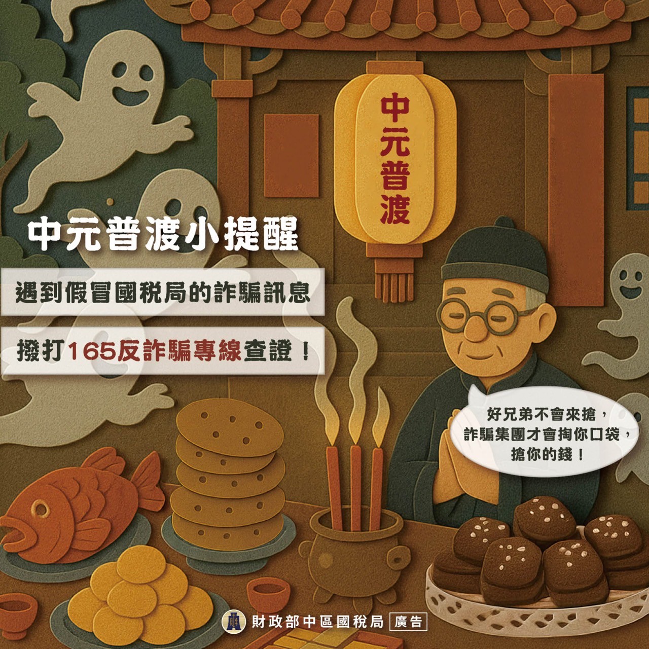 中元普渡小提醒 遇到假冒國稅局的詐騙訊息撥打165反詐騙專線查證