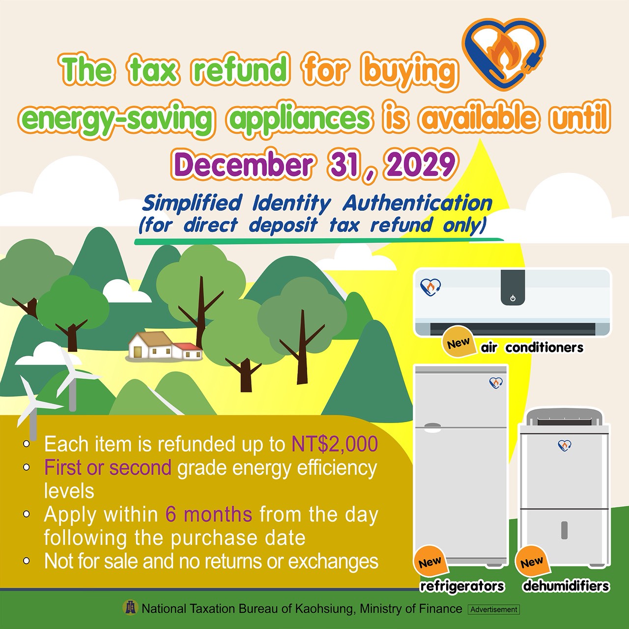 The tax refund for buying energy-saving appliances is available until December 31,2029