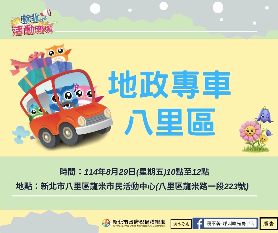 這次稅捐稽徵處淡水分處結合淡水地政專車將來到八里地區,為大家提供現場洽公服務。