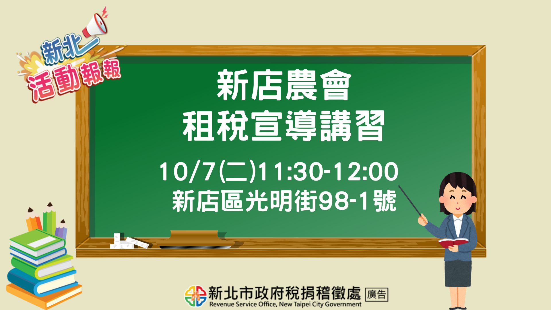 新北活動報報-新店分處將於10月7日(二)11:30-12:00新店農會辦理租稅宣導講習!!地方稅知識、納稅者權利保護法、雲端發票載具的好處等實用內容一次報給你知道,還有有獎問答送禮物!!~歡迎大家踴躍參加!