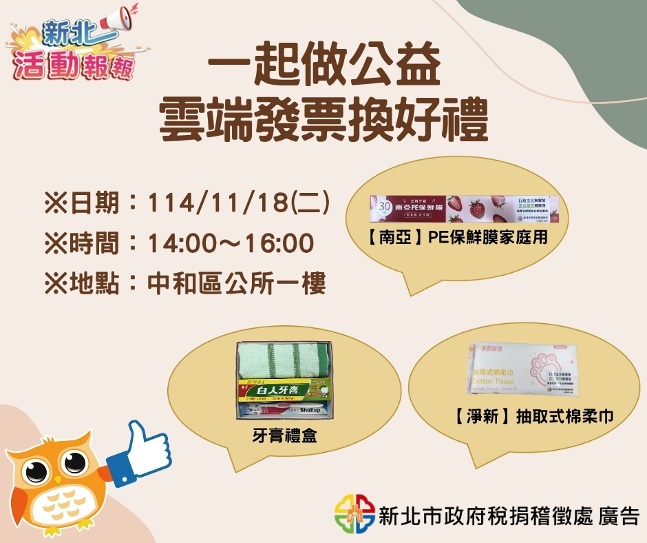 只要捐贈未開獎雲端發票,就可以兌換精美又實用的禮品,