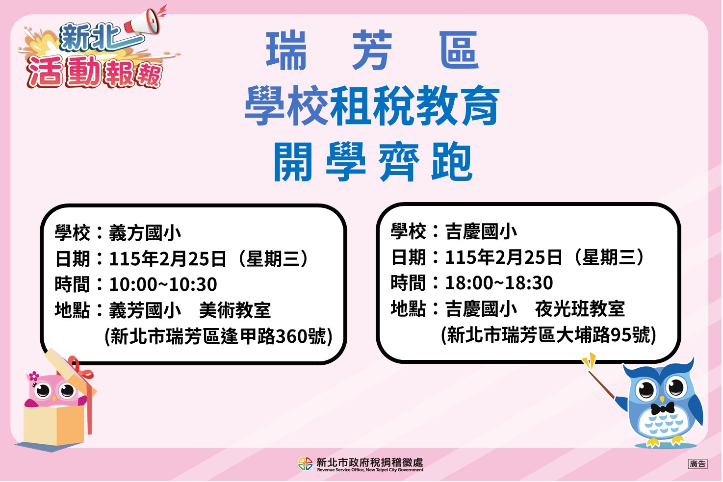 新學期即將開始,瑞芳區吉慶及義方兩所國小的小朋友們,分別透過租稅教育宣導動畫片觀賞、有獎徵答、遊戲互動等方式學習租稅知識。