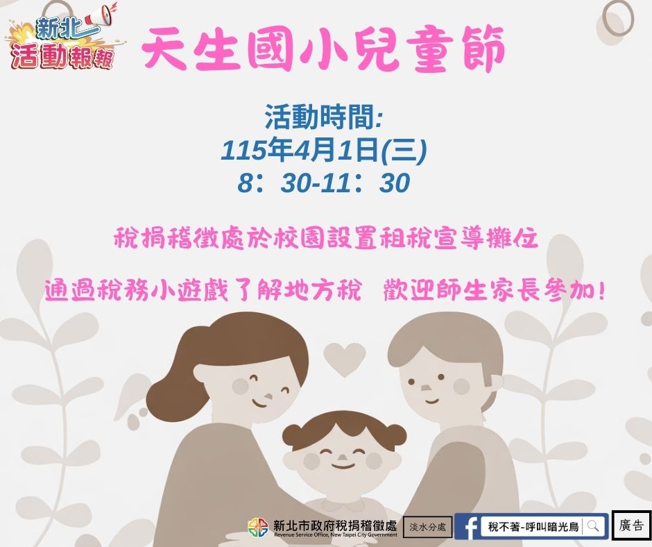 【新北活動報報】【淡水分處】🎈【兒童節快樂!來天生國小園遊會邊玩邊學稅務小知識】🎈