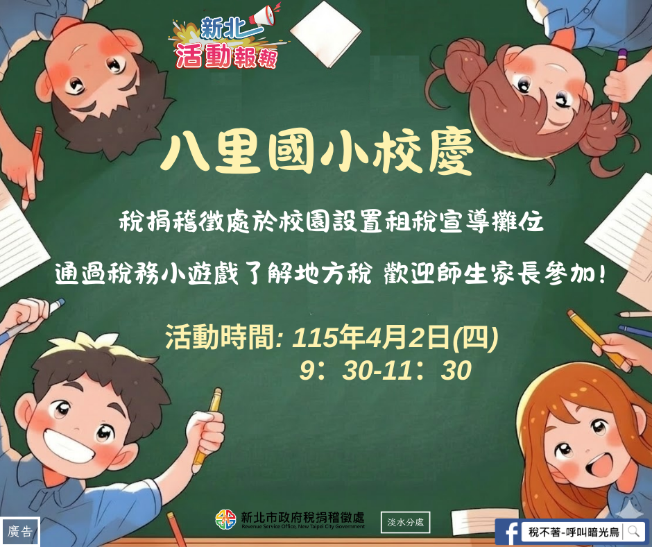 【新北活動報報】【淡水分處】🎉【八里國小校慶熱鬧登場!來挑戰稅務小遊戲拿小禮物】🎉