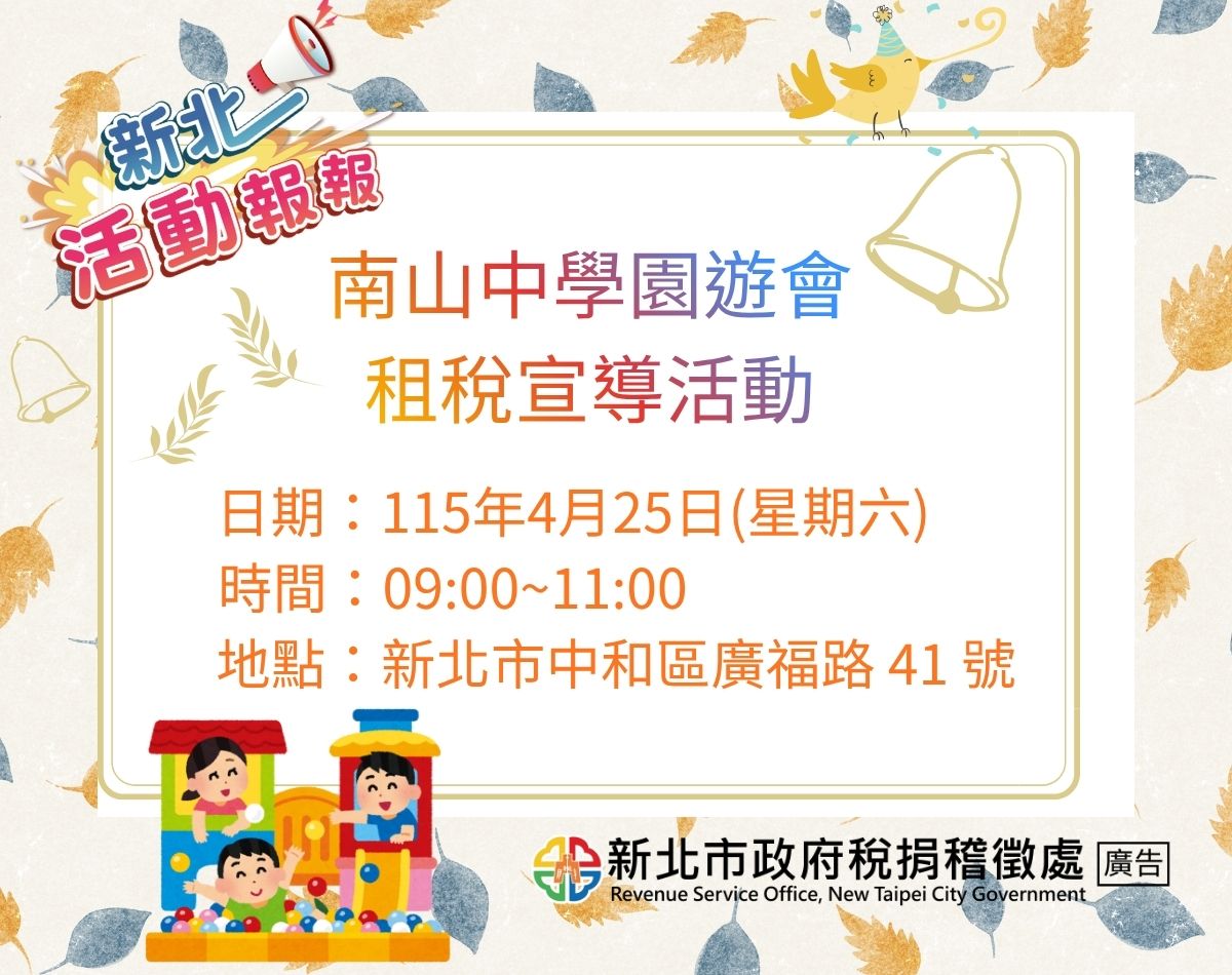 本次中和稅捐分處也將在當日上午9:00~11:00至現場設置攤位~