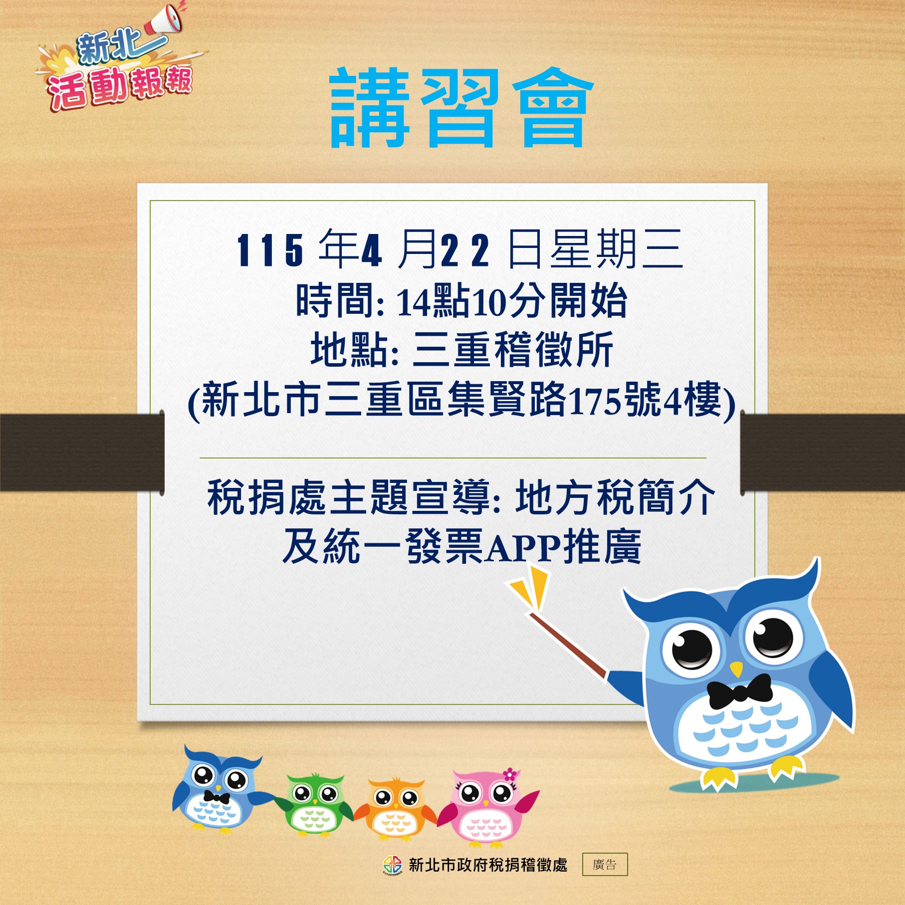 【新北活動報報-「三重稽徵所-地方稅簡介及統一發票APP推廣」】