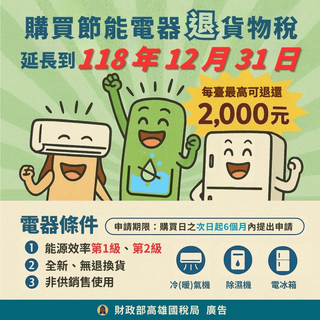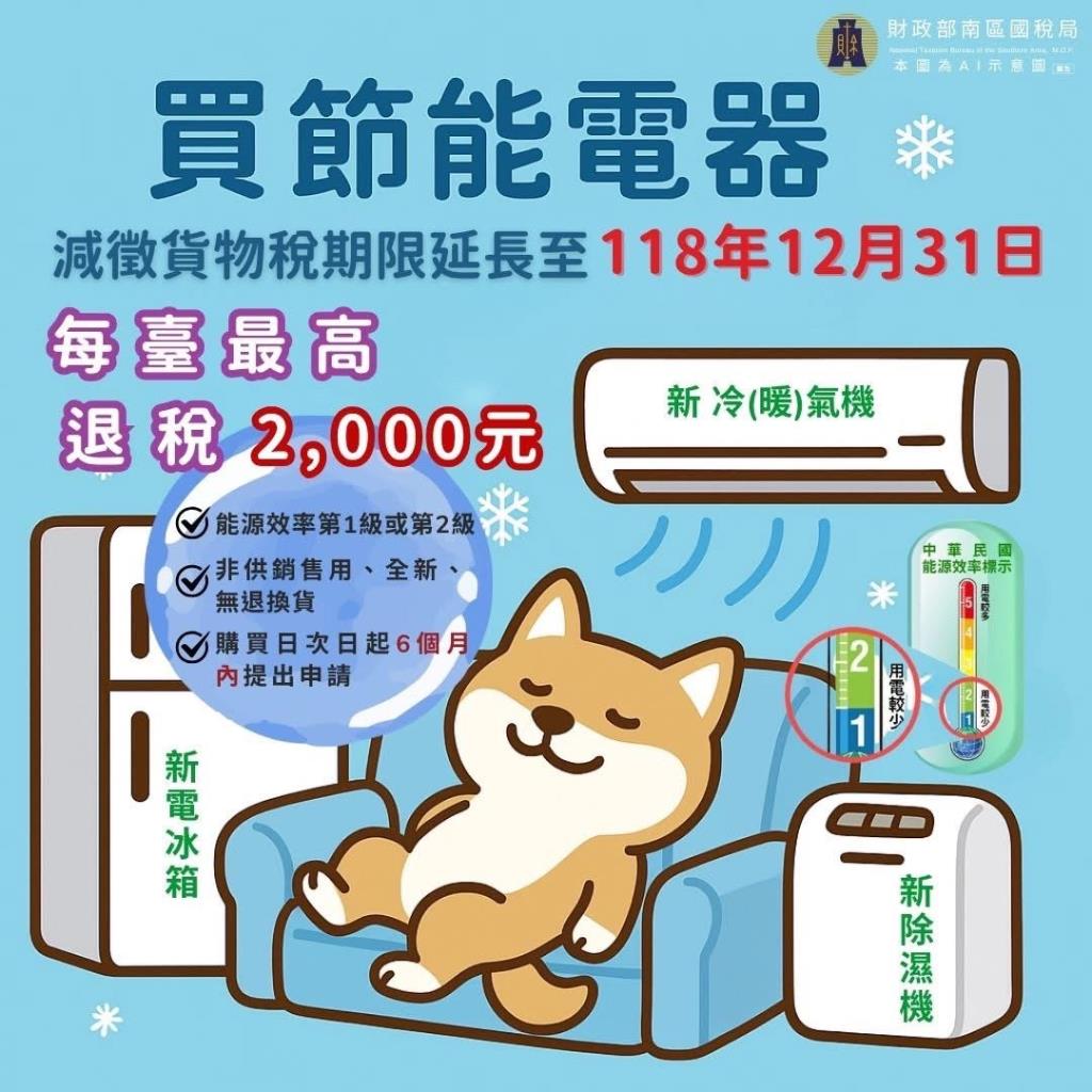 買節能電器減徵貨物稅期限延長至118年12月31日