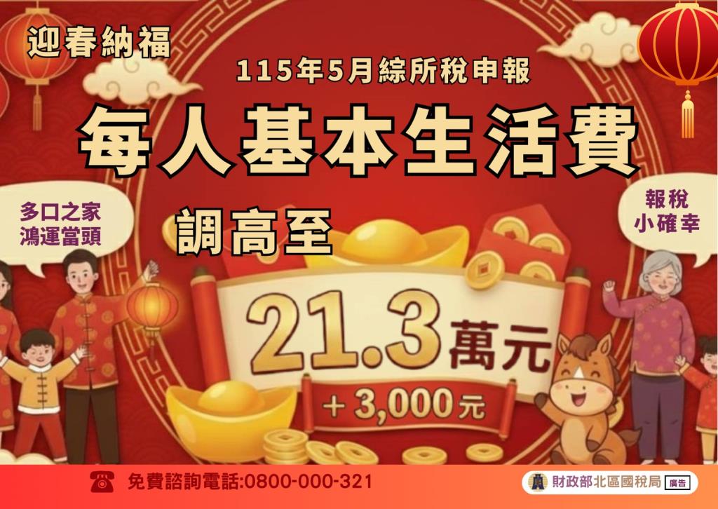 115年5月綜所稅申報 每人基本生活費調高至21.3萬元