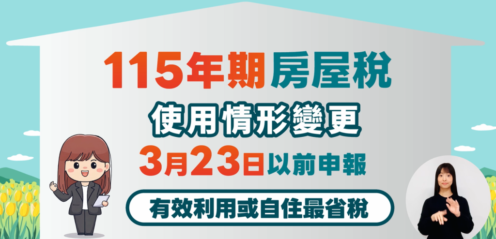 115年期房屋稅使用情形變更3/23以前申報有效利用或自住最省稅